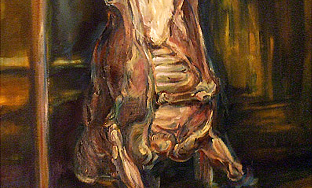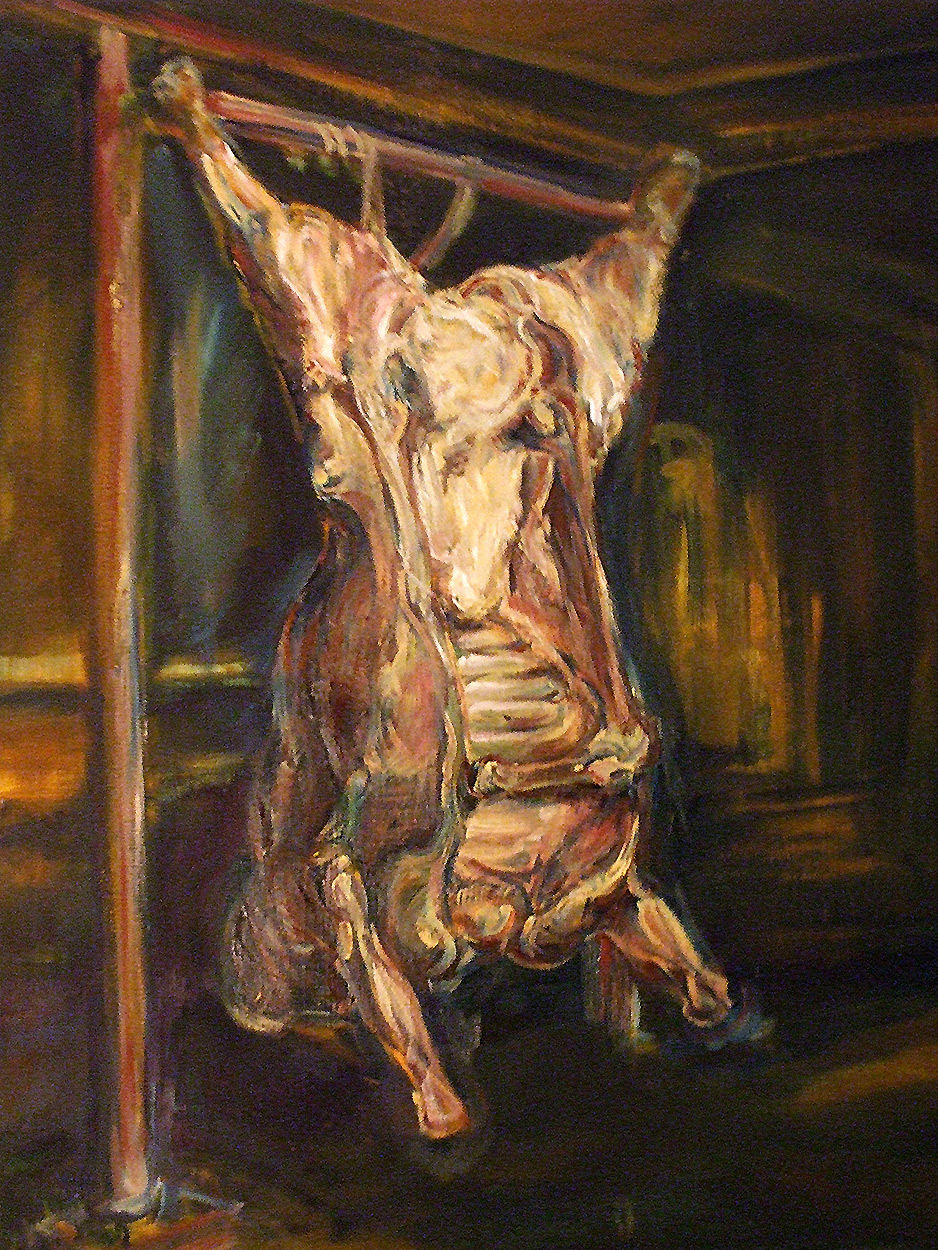 Étude de peinture à l'huile, reproductive du célèbre Bœuf écorché de Rembrandt. Étude particulière dans la pâte de la peinture et la recherche de couleurs.