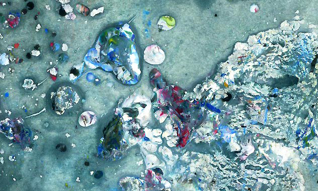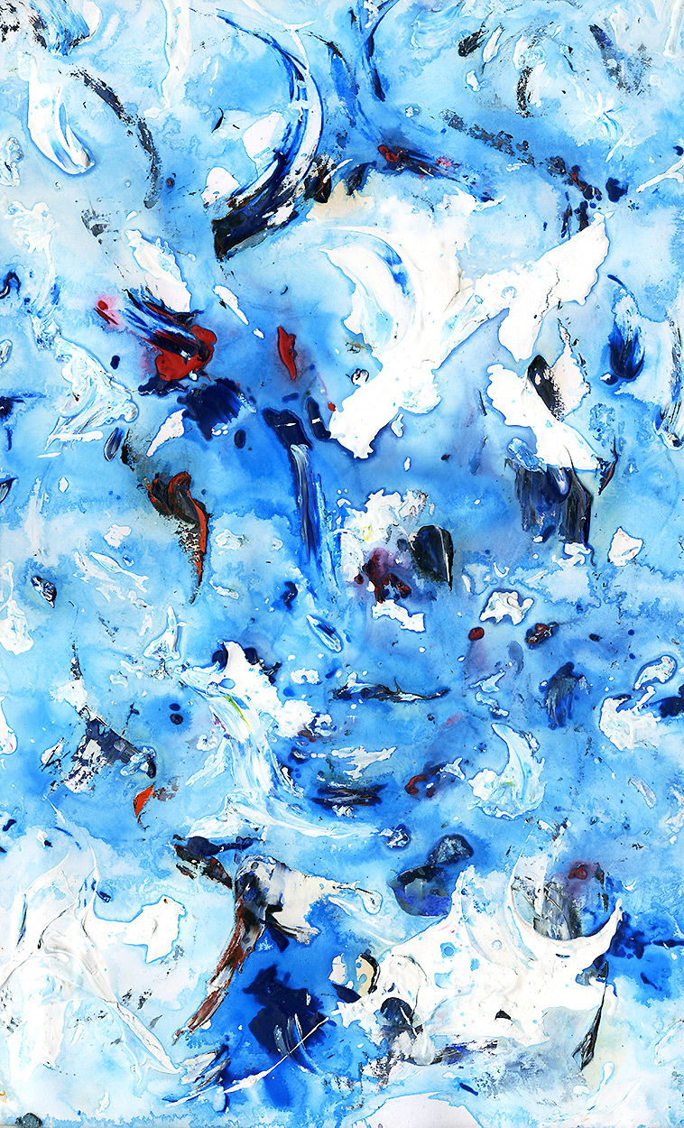 Un effet de matière avec peinture acrylique marinée et séchée plusieurs fois de suite. Une impression minérale d'eau et de glace, avec dynamisme et mouvements vivants.