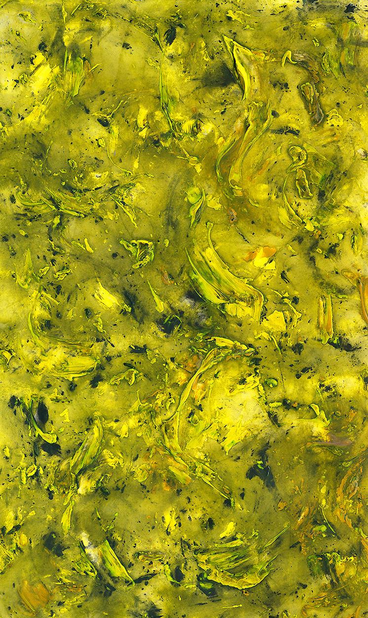 Un effet de matière de peinture acrylique mariné dans l'eau et sèché à plusieurs reprises, basée sur une seule couleur. Comme but, un effet de dynamisme.