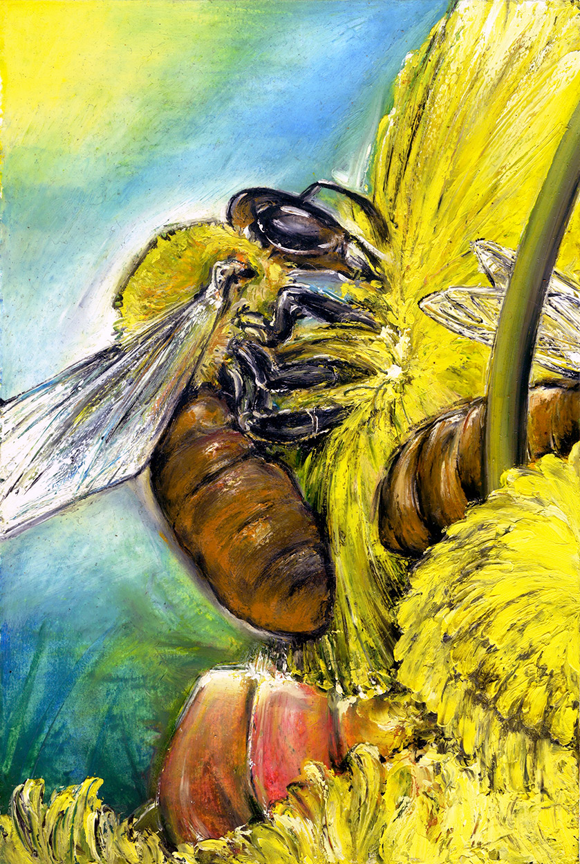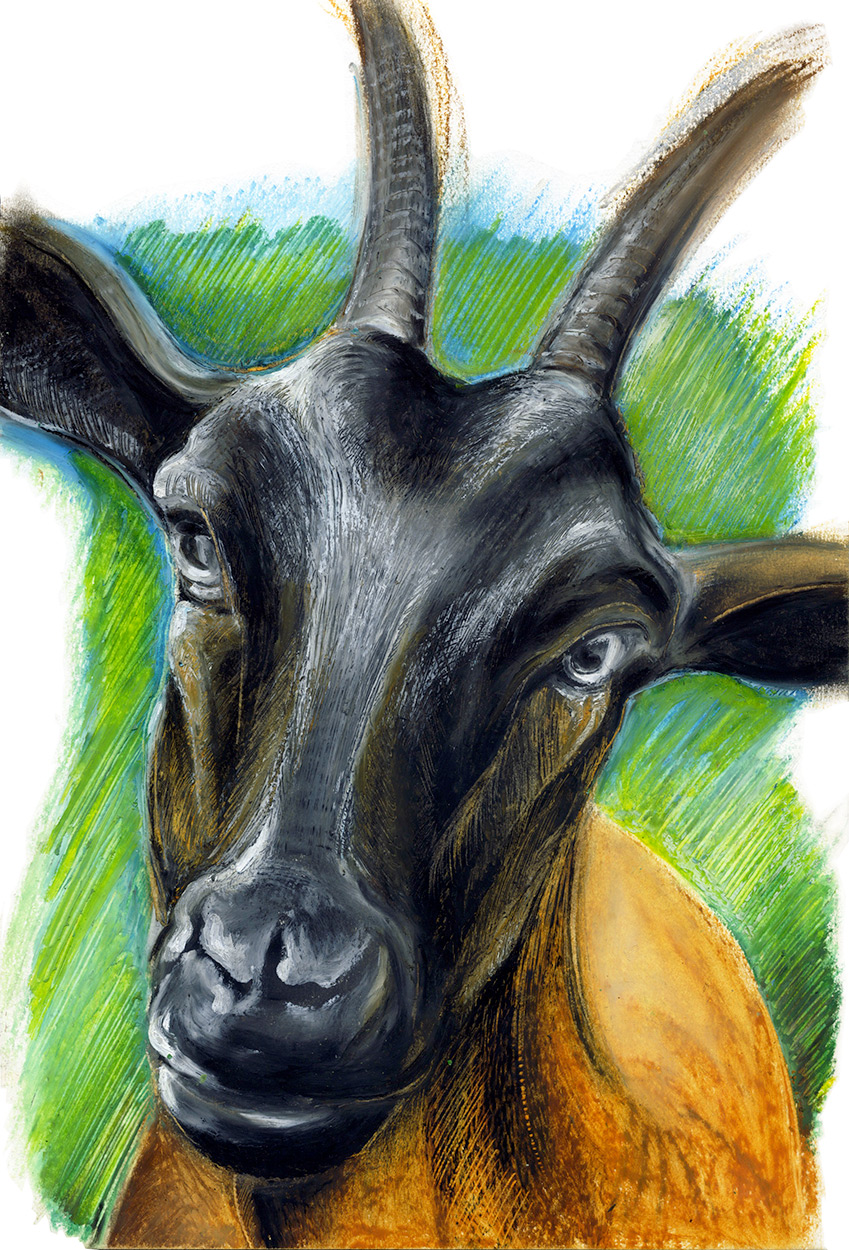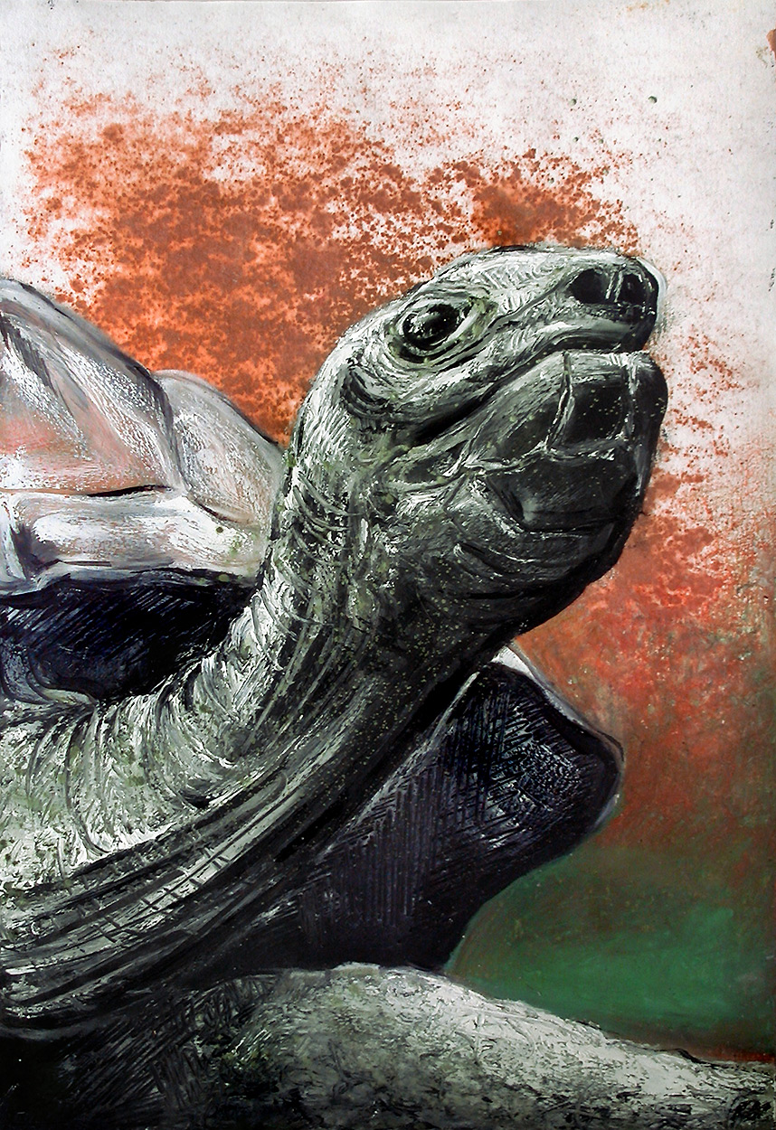 Le pastel à l'huile est un mélange entre la peinture et le dessin. Cette technique permet aussi la recherche à illustrer le sujet avec des effets de matière.