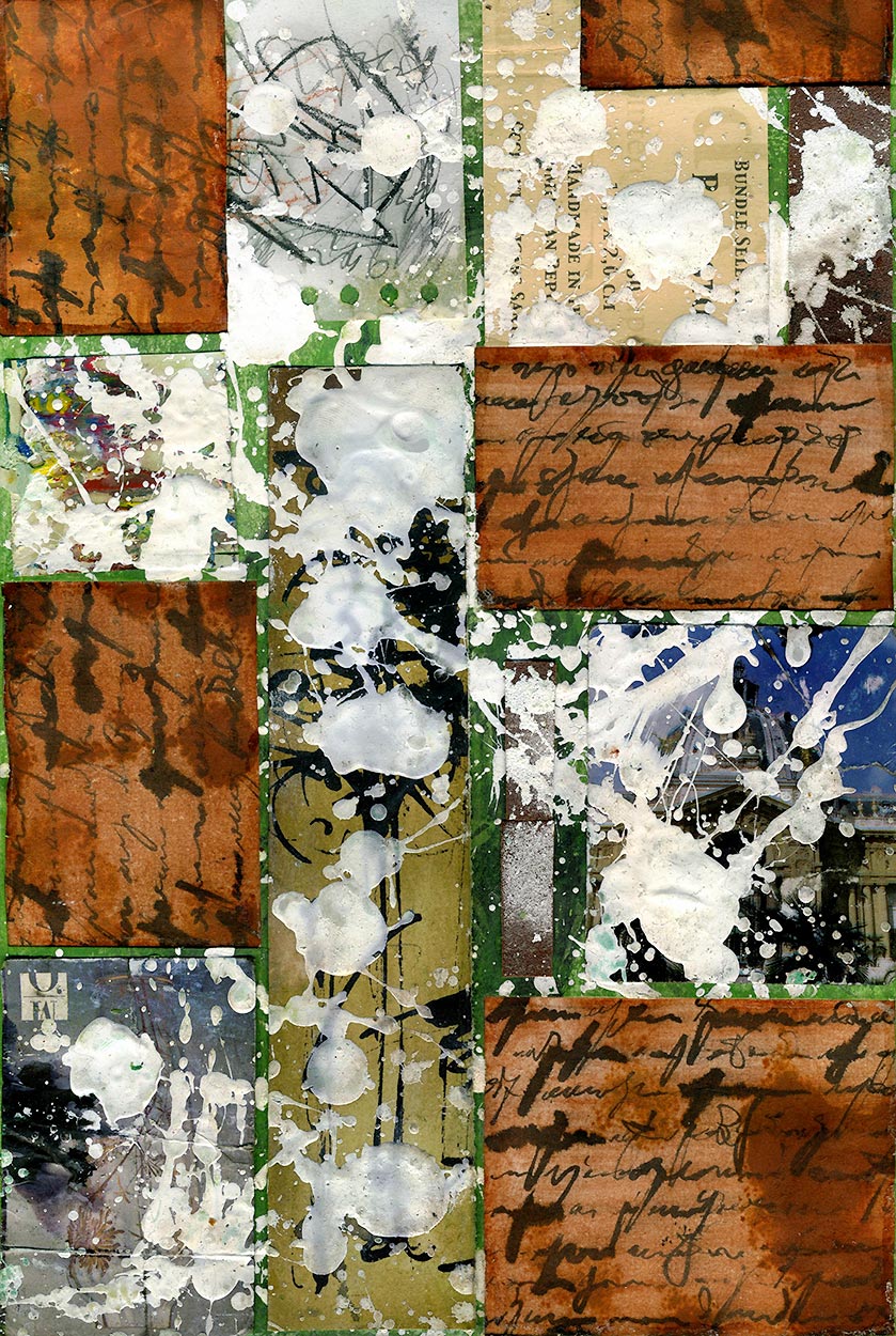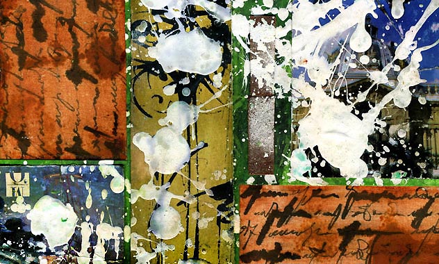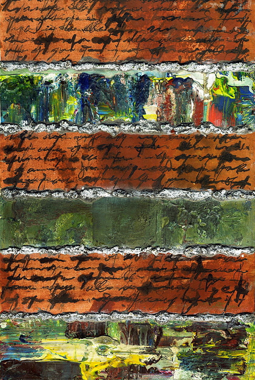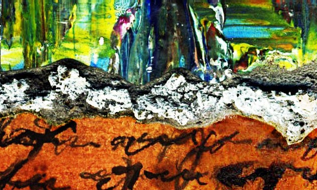 C'est un travail d'effet de matière lié à la calligraphie. L'écriture et les matières brutes s'unissent pour évoquer la tension et le mouvement.