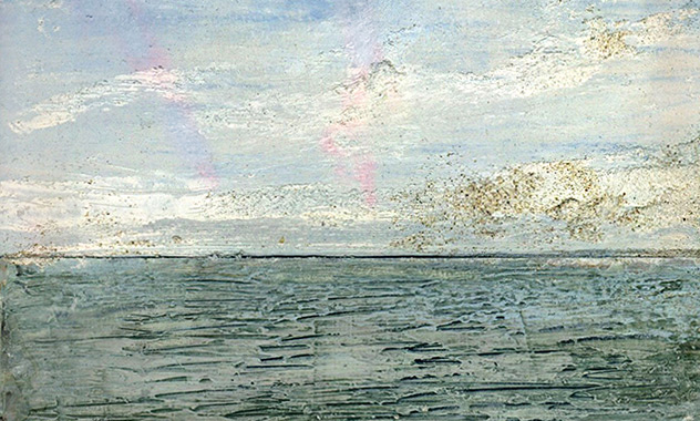 Peinture TXBRUT de la plage, composée de peinture à l'huile, de pigments et de sable. Sujet : Plage de La Seyne-sur-Mer, dans le sud de la France.